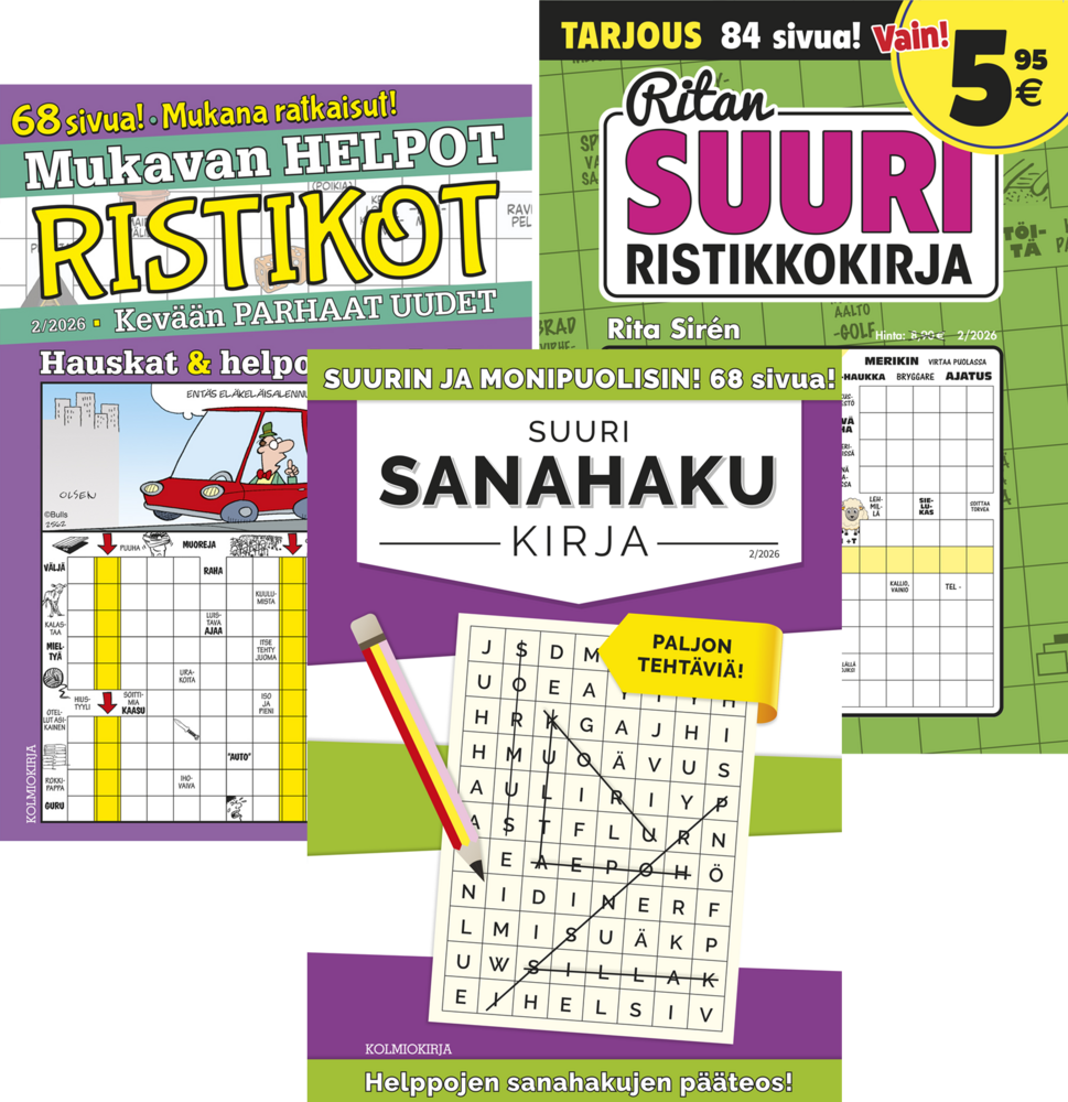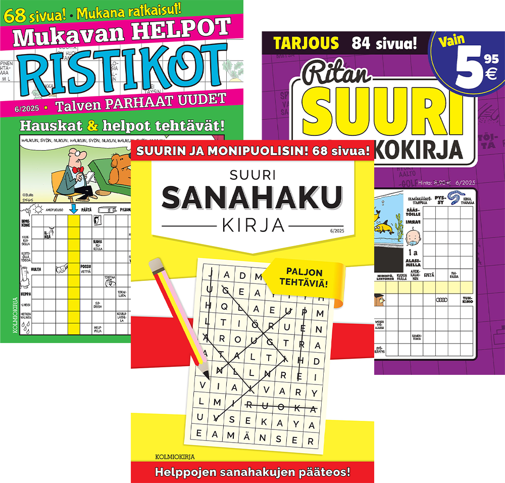 Mukavan Helpot Ristikot sisältää 68 sivua laadukkaita ristikoita. Jokainen numero sisältää kokoelman Kolmiokirjan huippulaatijoiden parhaita tehtäviä...