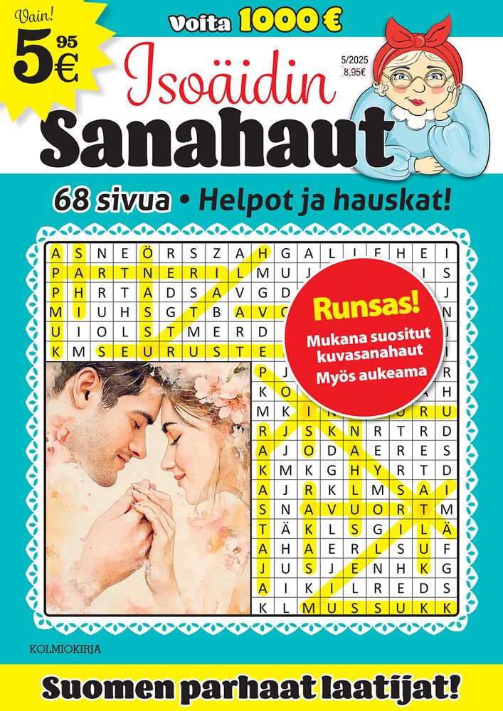 Suomisen Sanahaut on muhkea, uusi 68-sivuinen sanahakulehti. Lehdessä on runsaasti helppoja sanahakuja, jotka sopivat koko perheen yhteiseksi harrastukseksi mainiosti.