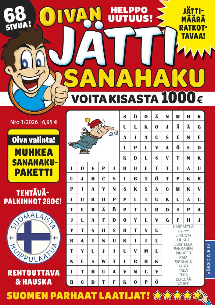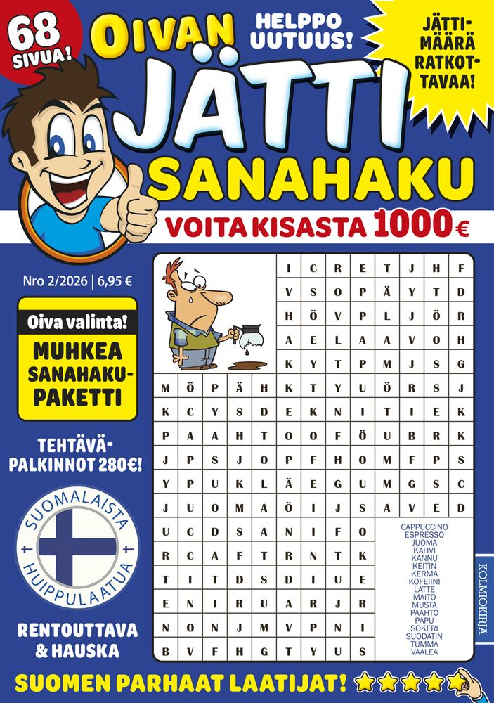 Oivan Jätti Sanahaku ilmestyy parillisen kuukauden 15. päivä. Tilaus alkaa seuraavasta mahdollisesta numerosta.